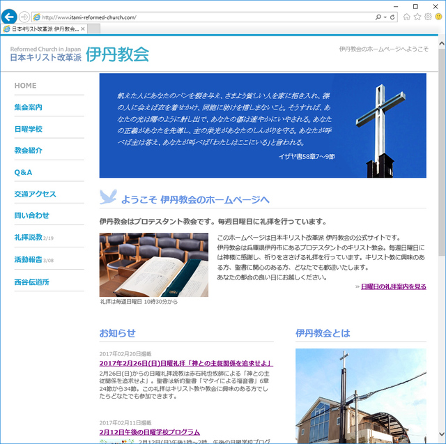伊丹教会は兵庫県伊丹市にあるプロテスタントのキリスト教会。毎週日曜日には神様に感謝し、祈りをささげる礼拝を行っています。キリスト教に興味のある方、聖書に関心のある方、どなたでも歓迎いたします。あなた…
