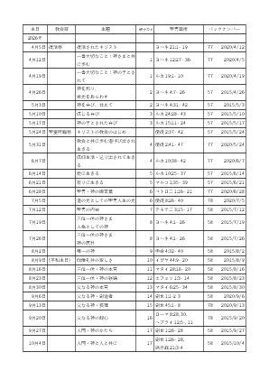 カテキズム 主題 聖書 添付ファイル 2027年度〜28年度カテキズム通年カリキュラム 創世記- 問1 一番大切なこと:神と共に歩む 創世記12:27-12:36 問1 一番大切なこと:神の子とされて ルカによる福音書19:1-19:10 問2 信じて歩む道:神を知る喜びに生きる ヨハネによる福音書4:7-4:26 問2 信じて歩む道:神と人に仕えて生きる ヨハネによる福音書4:31-4:42 問3 救われた歩み:イエスさまを信じる ルカによる福音書24:28-24:43