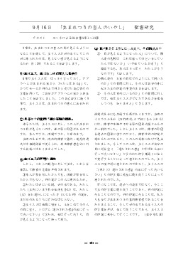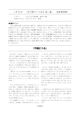 年月日 教会歴・行事 聖書箇所 タイトル 添付ファイル 2026/03/31 創世記- 2025全体カリキュラム 2025/10/26 宗教改革記念日 出エジプト記32:1- 金の子牛の事 2025/10/19 出エジプト記19:1-20:21 十戒を授かる 2025/10/12 出エジプト記16:1- 天からのパン 2025/10/05 出エジプト記14:1- 葦の海を渡る 2025/09/28 出エジプト記7:8-7:24 十の災いと過ぎ越し 2025/09/21 出エジプト記3:1-3:22 モーセの召命 2025/09/14 創世記1:22-2:10 モーセの誕生 2025/09/07 創世記50:15-50:21 摂理の主の勝利 2025/08/31 創世記41:1-41:44 総理大臣になったヨセフ 2025/08/24 創世記37:1-37:36 売られたヨセフ 2025/08/17 創世記27:01-27:40 ヤコブとエサウ 2025/08/10 平和主日 ゼカリヤ書09:09-09:10 平和を実現する 2025/08/03 使徒言行録27:01-27:44 ローマへの出発 2025/07/27 創世記21:01-21:36 パウロの逮捕 2025/07/20 使徒言行録17:16-17:33 アレオパゴスで語る 2025/07/13 創世記16:11-16:40 フィリピでの宣教 2025/07/06 創世記11:19-11:30 世界を目指すアンティオキア教会 2025/06/29 使徒言行録09:01-19 サウロを回心させる復活のキリスト 2025/06/22 使徒言行録7:1-7 御言葉をめぐって整えられる奉仕者 2025/06/15 使徒言行録3:1-10 ペトロとヨハネの働き 2025/06/08 ペンテコステ ヨハネによる福音書20:19-20:23 聖霊を受けなさい 2025/06/01 ヨハネによる福音書11:1-11:44 ラザロを生き返らせる 2025/05/25 ヨハネによる福音書09:01-09:12 生まれつきの盲人のいやし 2025/05/18 ヨハネによる福音書06:01-06:15 5000人の給食 2025/05/11 ヨハネによる福音書05:01-05:18 ベトザタの池での癒し 2025/05/04 ヨハネによる福音書12:03-12:06 役人の息子のいやし 2025/04/27 ヨハネによる福音書2:1-12 カナの婚礼 2025/04/20 イースター ヨハネによる福音書20:19-23 復活のキリスト 2025/04/13 受難週 ヨハネによる福音書19:17-30 十字架のキリスト 2025/04/06 ヨハネによる福音書13:12-20 愛の歩み 2025/03/30 創世記22:1-22:19 イサク奉献 2025/03/23 創世記19:1-19:29 ソドムとゴモラ 2025/03/16 創世記17:1-17:27 割礼 2025/03/09 受難節 創世記15:1-15:21 アブラハムへの約束 2025/03/02 創世記11:27-12:9 アブラムの召命 2025/02/23 創世記11:1-11:9 バベルの塔 2025/02/16 創世記8:1-9:17 虹の契約 2025/02/09 創世記6:1-7:24 ノアの箱舟 2025/02/02 創世記4:1-4:16 カインとアベル 2025/01/26 創世記3:1-3:24 罪と堕落 2025/01/19 創世記1:26-2:15 人間の務め 2025/01/12 創世記1:26-1:31 人間の創造 2025/01/05 新年 創世記1:1-2:3 天地創造 2024/12/29 マタイによる福音書2:1-2:23 エジプトへ逃れる 2024/12/22 クリスマス マタイによる福音書2:1-2:12 東方の学者たち 2024/12/15 待降節③ マタイによる福音書1:18-1:25 罪からの救い主 2024/12/08 待降節② マタイによる福音書1:18-1:25 ヨセフへの告知 2024/12/01 待降節① マタイによる福音書1:1-1:17 待降・キリストの系図 2024/11/24 ルカによる福音書18:9-18:14 ファリサイ人と徴税人 2024/11/17 ルカによる福音書15:11-15:32 放蕩息子 2024/11/10 ルカによる福音書15:1-15:7 見失った羊のたとえ 2024/11/03 ルカによる福音書10:25-10:37 善きサマリア人 2024/10/27 宗教改革 マタイによる福音書25:14-25:30 タラントンのたとえ 2024/10/20 マタイによる福音書25:1-25:13 十人のおとめ 2024/10/13 マタイによる福音書20:1-20:16 ブドウ園の労働者 2024/10/06 マタイによる福音書13:44-13:52 天の国のたとえ 2024/09/29 マタイによる福音書13:1-13:23 種まきのたとえ 2024/09/22 ルカによる福音書10:1-10:20 72人を派遣する 2024/09/15 マタイによる福音書18:1-18:5 天の国でいちばん偉い者 2024/09/08 マタイによる福音書17:1-17:13 山上の変貌 2024/09/01 ルカによる福音書8:26-8:39 レギオンを追い出す 2024/08/25 ヨナ書4- とうごまの木とヨナ 2024/08/18 ヨナ書3- ニネべで宣べ伝えるヨナ 2024/08/11 平和主日 マタイによる福音書5:9- 平和主日 2024/08/04 ヨナ書2- 魚の腹の中のヨナ 2024/07/28 ヨナ書1- 逃げ出したヨナ 2024/07/21 ルカによる福音書7:36-8:3 夫人の癒しと奉仕 2024/07/14 ルカによる福音書7:11-7:17 やもめの息子の復活 2024/07/07 ルカによる福音書7:1-7:10 百人隊長の僕の癒し 2024/06/30 ルカによる福音書6:39-6:49 確かな土台 2024/06/23 ルカによる福音書6:27-6:38 敵を愛せ 2024/06/16 マタイによる福音書5:13-5:16 地の塩・世の光 2024/06/09 ルカによる福音書6:17-6:24 幸いと不幸 2024/06/02 ルカによる福音書5:1-5:11 人間をとる漁師 2024/05/26 マタイによる福音書3:13-3:17 洗礼をお受けになる主イエス 2024/05/19 ペンテコステ 使徒言行録2:1-2:24 聖霊が注がれる 2024/05/12 使徒言行録1:6-1:11 キリストの昇天 2024/05/05 ヨハネによる福音書15:11-15:17 教会を建て上げるキリストと聖霊 2024/04/28 ルカによる福音書24:36-24:49 キリストの証人となる 2024/04/21 マタイによる福音書28:16-28:20 弟子たちを派遣するキリスト 2024/04/14 創世記21:15-21:19 弟子たちを立ち上がらせるキリスト 2024/04/07 ヨハネによる福音書21:1-21:14 弟子たちを慰めるキリスト 2024/03/31 イースター マタイによる福音書28:1-28:10 復活のキリスト 2024/03/31 2024全体カリキュラム 創世記- 2024全体カリキュラム 2024/03/24 待降節③ マタイによる福音書1:18-1:25 罪からの救い主 添付なし 2023/04/30 創世記1:31-2:3 神の栄光の舞台 2023/04/23 創世記1:6-1:25 被造物の祝福 2023/04/16 創世記1:1-1:5 創造主なる神 20