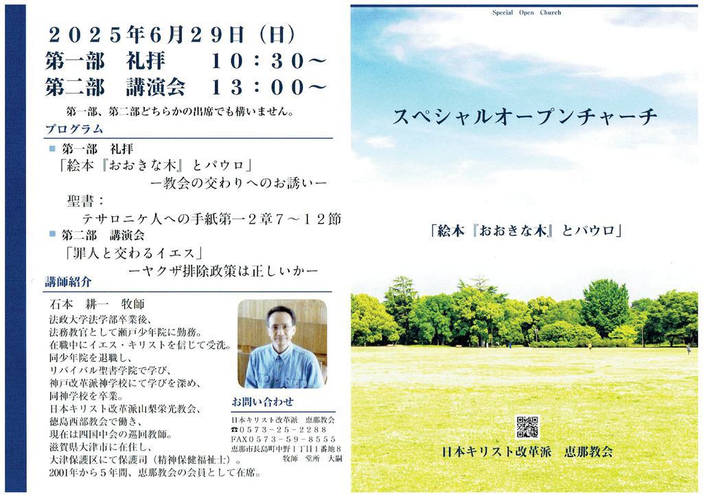 2025年6月29日スペシャルオープンチャーチ&講演会のお知らせ
